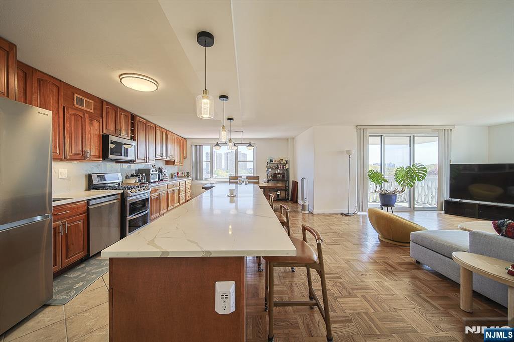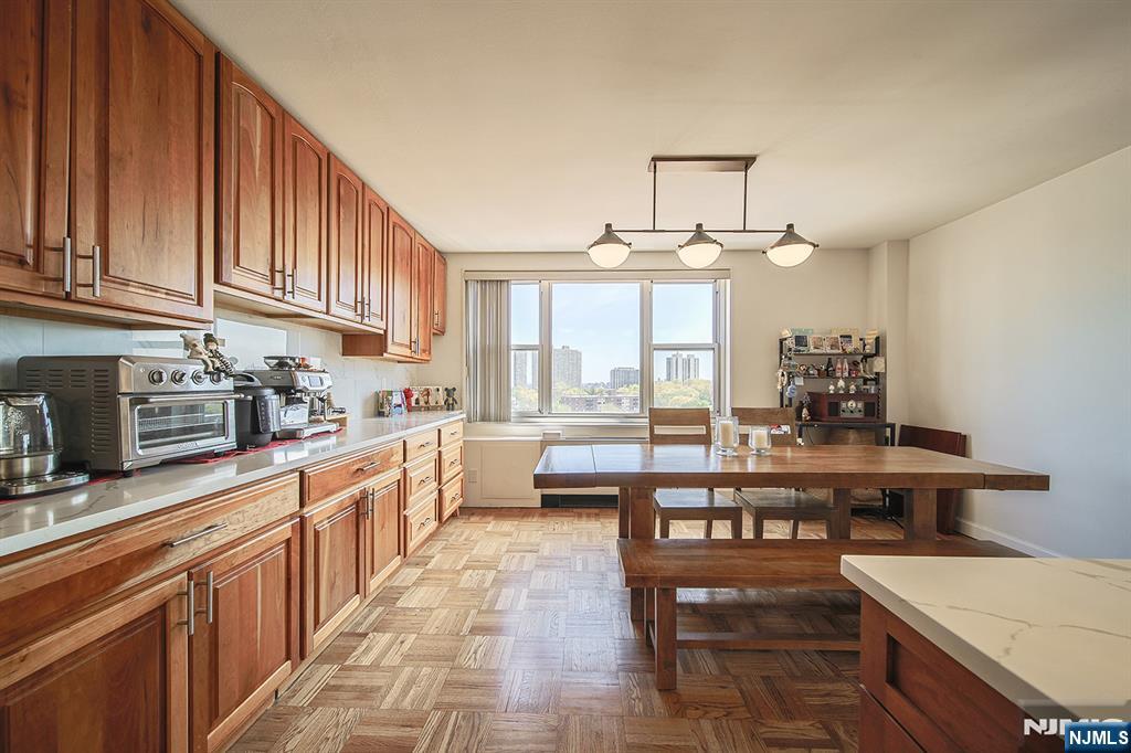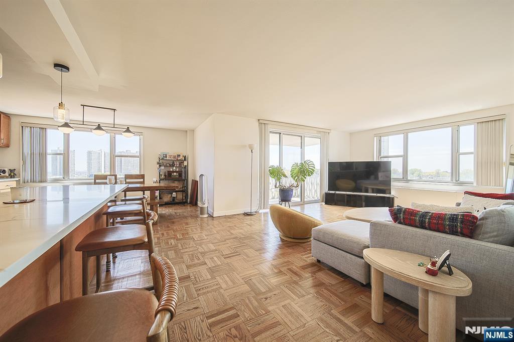 Beautiful Renovated Condo at Med South is ready for you to move in. Hardwood floor, renovated kitchen and bathrooms. Eastern and southern exposures provide much light in every room. Full time superintendent, on site management, outdoor pools, playground. manicured grounds and one floor laundry room, indoor or outdoor parking(95$/85/75 per month per car) assigned after closing by management. choice of Spectrum for $15/month per resident. Free shuttle for NY Presbyterian employees across the street. Easy access to NYC-bound buses, major NJ highways, and fort Lee's vibrant dining scene. Don't miss this exceptional CHANCE. A must see!!!